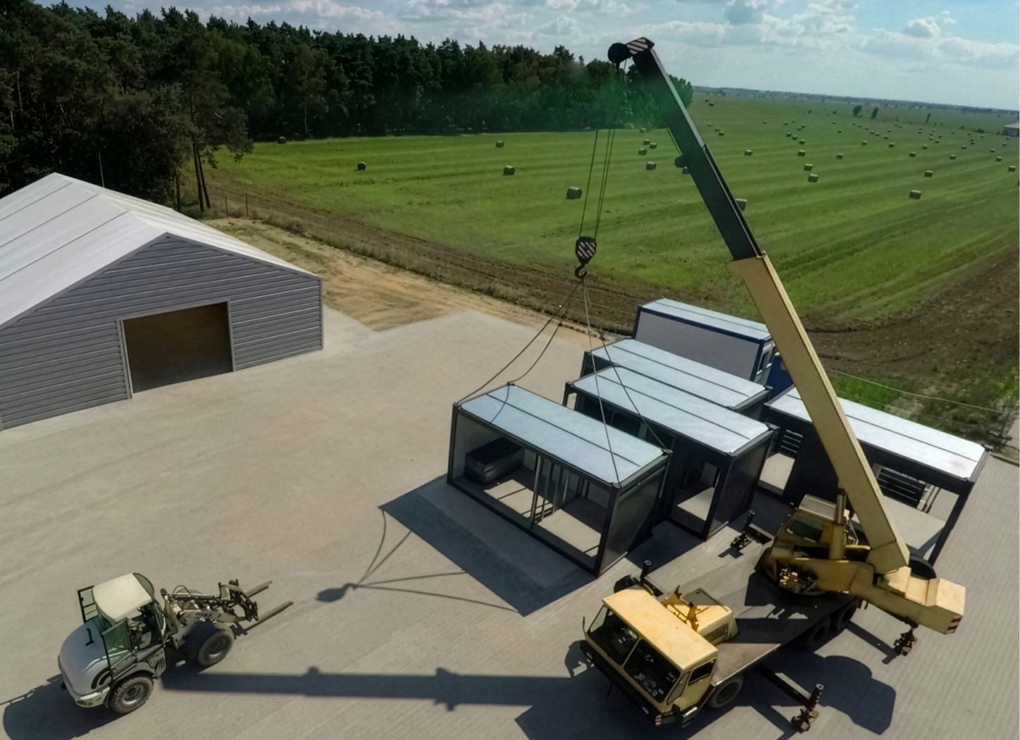 As part of the project, we carried out the complete installation of a system-based building consisting of four “20” containers. The process included mounting the steel structure, foundations made of B20 concrete, and exterior walls with polyurethane core sandwich panels for excellent insulation.